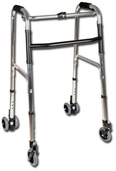 - 2 db hátsó kerék, amely fékezhető olyan módon, hogy a kerekek egy rugós szerkezeten helyzkednek el, ha nagyobb súllyal ránehezkedik a felhasználó a keretre, akkor a kerekek lenyomódnak és a kerekek közötti lábak leérnek és fékeznek